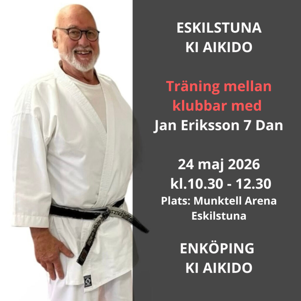 24 maj och nästa Aikido möte i Eskilstuna med Jan Eriksson 7 Dan. Samåk gärna! Välkommen!